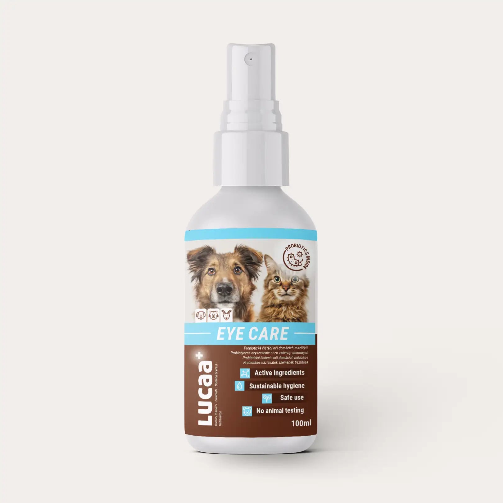 LUCAA+ Eye Care sprej byl vyvinut speciálně pro citlivé oči psů, koček a dalších domácích zvířat. Jeho šetrné probiotické složení přirozeně čistí oční okolí, redukuje zarudnutí a podráždění a pomáhá předcházet infekcím.